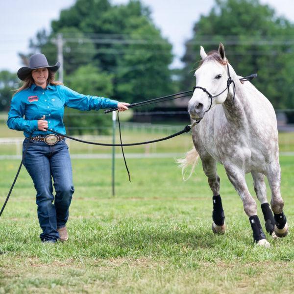 Katlyn got her first horse when she was in high school and hasn’t been without a horse since. Her first horse, Sally, a Quarter Horse cross mare, had a spicy personality. “She was super hot and everything a first horse shouldn’t be, but I loved her. I think we worked well together because I rode her and rode her,” Katlyn says.
