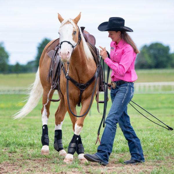 Encouraged by her success with Blondy, Synda began taking on colts to start. In 2015, she got a particularly spooky colt that bucked her off. She decided to explore different training approaches to get through to him. “I knew my grandpa’s program well, but I didn’t understand why he did the things he did. I just knew how he did it,” Synda says. “When I found Clinton’s videos on YouTube, his step-by-step instructions made sense to me and answered my question about why I needed to do something.”